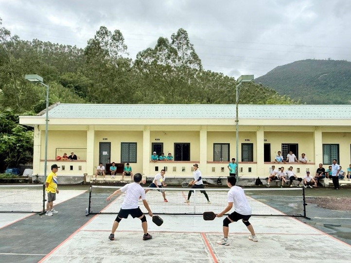 Hoạt động giao lưu diễn ra sôi nổi với nhiều nội dung hấp dẫn như pickleball, kéo co, tiếp sức khéo léo và giao lưu bóng đá. Mỗi trận đấu, mỗi phần thi không chỉ là cuộc tranh tài về thể lực, kỹ năng mà còn là nơi thể hiện ý chí, sự phối hợp nhịp nhàng và tinh thần đồng đội. Những bước chạy, những pha bóng đẹp mắt cùng tiếng reo hò cổ vũ đã góp phần tạo nên bầu không khí đoàn kết, gắn bó, tràn đầy năng lượng tích cực.
