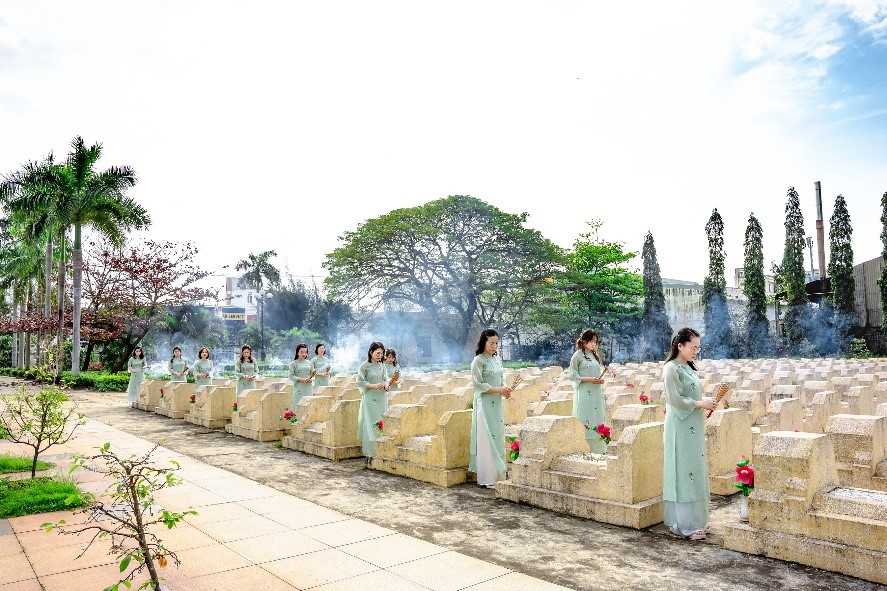 Tập thể nữ CBCNV AKKN dâng hương, dâng hoa tại Nghĩa Trang liệt sỹ thành phố Quy Nhơn, tỉnh Bình Định