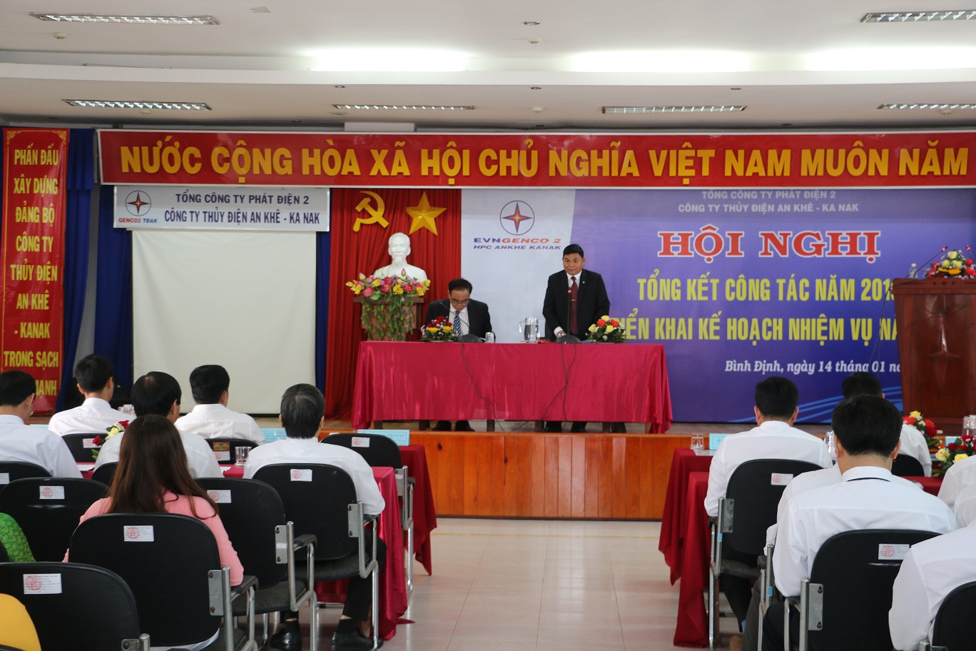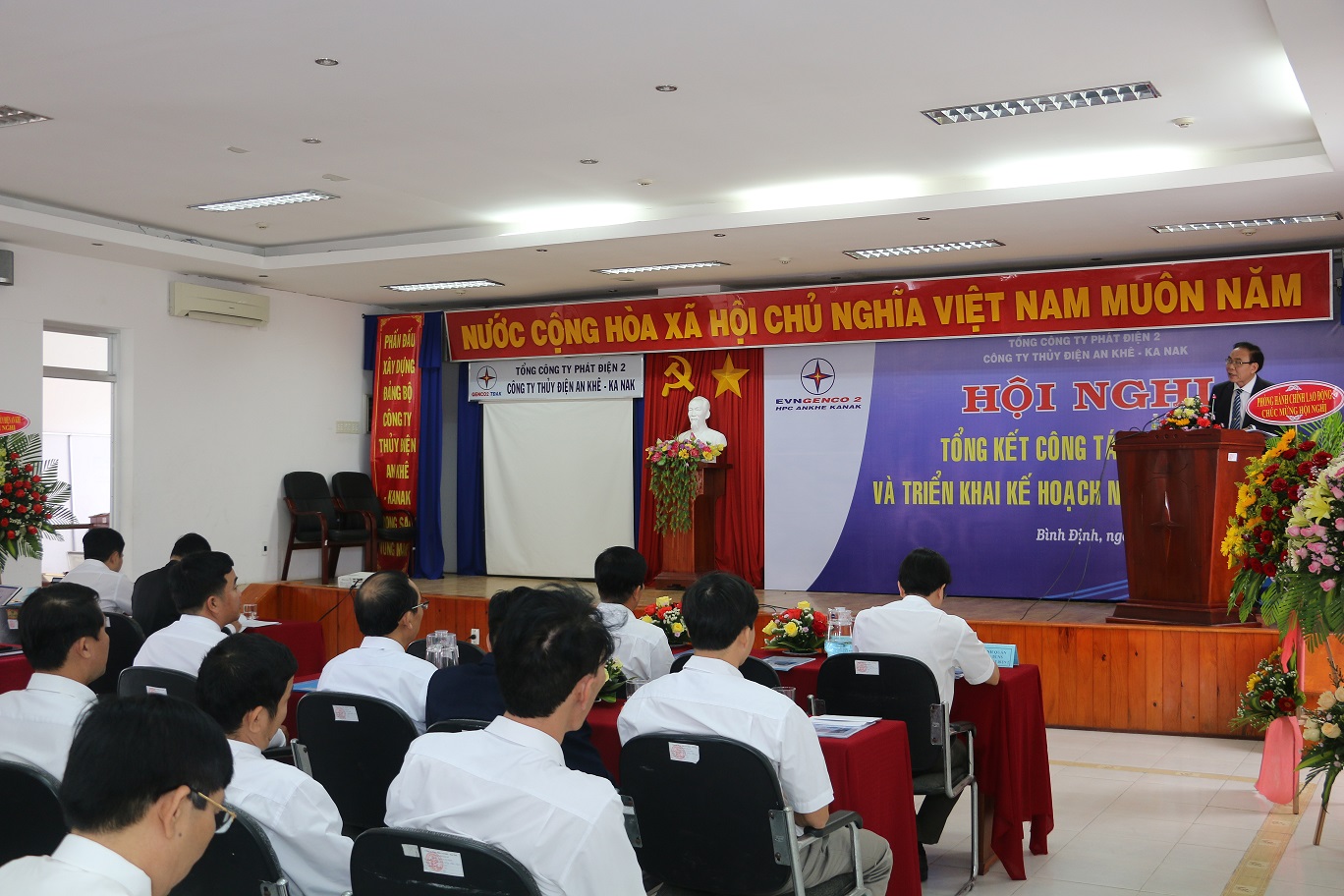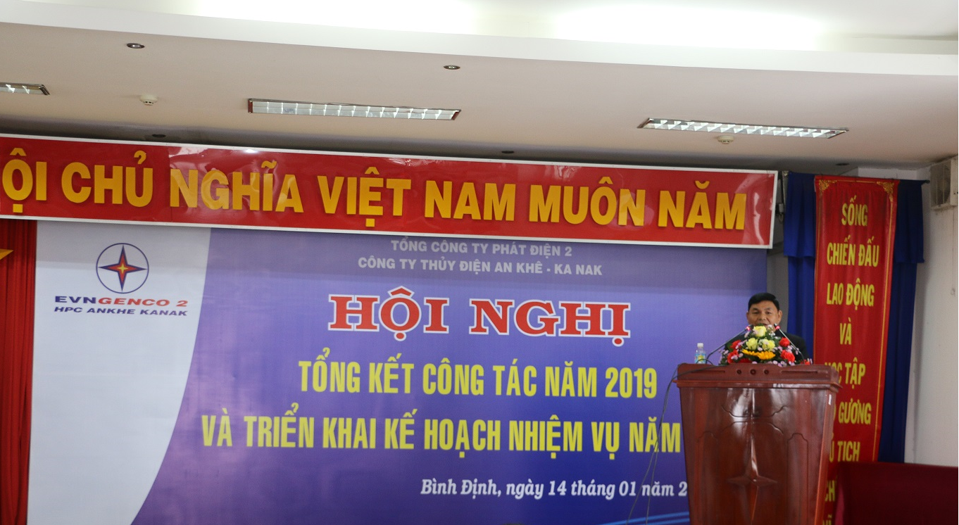 Tại Hội nghị ông Đỗ Đức Hoài –Phó Giám đốc thay mặt lãnh đạo Công ty trình bày Báo cáo tổng kết hoạt động sản xuất kinh doanh năm 2019 và và triển khai nhiệm vụ kế hoạch năm 2020. Báo cáo đã phản ánh bức tranh toàn cảnh của Công ty trong năm 2019 vừa qua, trong đó nêu rõ, năm 2019 là một năm Công ty Thủy điện An Khê – Ka Nak đối mặt với rất nhiều khó khăn, thách thức nhất là tình trạng hạn hán kéo dài khiến cho mực nước hồ Ka Nak và hồ An Khê bị thiếu hụt nghiêm trọng. Tuy nhiên, dưới sự quan tâm chỉ đạo của các cấp, sự nỗ lực và quyết tâm cao độ của tập thể lãnh đạo và toàn thể CBCNV, Công ty đã vượt qua các khó khăn thử thách, hoàn thành tốt các nhiệm vụ được giao như hoàn thành tốt các chỉ tiêu kinh tế - kỹ thuật của Tổng công ty Phát điện 2 giao; thực hiện tốt công tác quản lý vận hành các nhà máy, sẵn sàng đáp ứng nhu cầu huy động của hệ thống điện quốc gia; đảm bảo yêu cầu chất lượng và tiến độ đề ra công tác duy tu bảo dưỡng, sửa chữa định kỳ các tổ máy Thủy điện An Khê và Thủy điện Ka Nak. Đặc biệt, dù lượng nước sản xuất bị thiếu hụt nhưng Công ty vẫn luôn ưu tiên đảm bảo cung cấp nước về hạ du theo đúng quy định và các chỉ đạo của Bộ Tài nguyên và Môi trường, Bộ Nông nghiệp & Phát triển Nông thôn, Bộ Công thương, Ủy ban nhân dân tỉnh Gia Lai và xả nước đúng với mức quy định của Quy trình vận hành liên hồ tại Quyết định số 878/QĐ-TTg ngày 18/7/2018 của Thủ tướng Chính phủ...