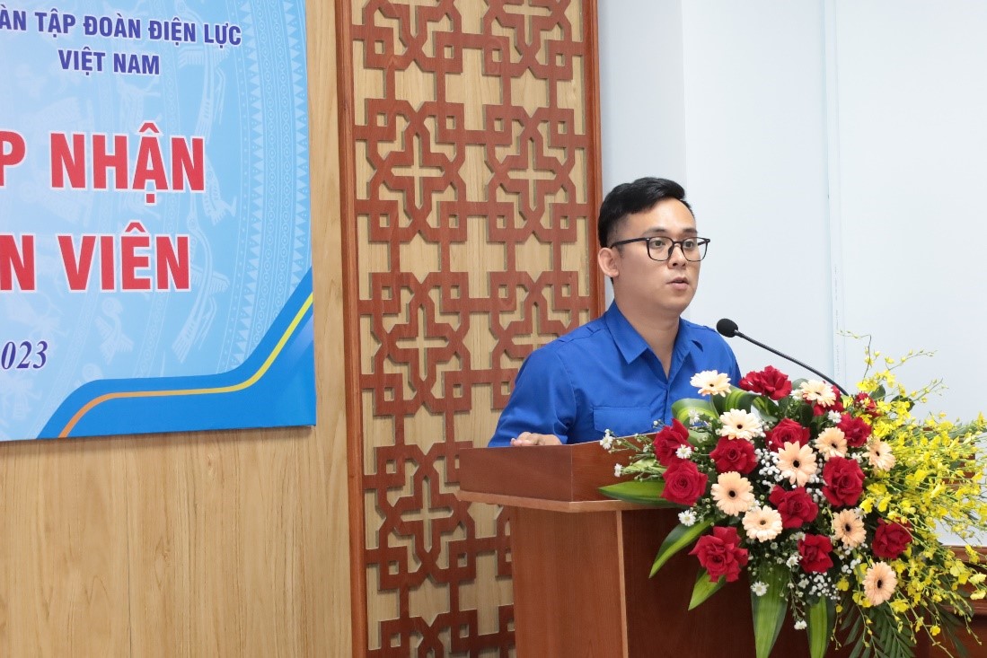 Đồng chí Dương Thái Anh - Ủy viên BCH Trung ương Đoàn, Ủy viên BCH Đoàn khối Doanh nghiệp Trung ương, Bí thư Đoàn TNCS Hồ Chí Minh EVN phát biểu