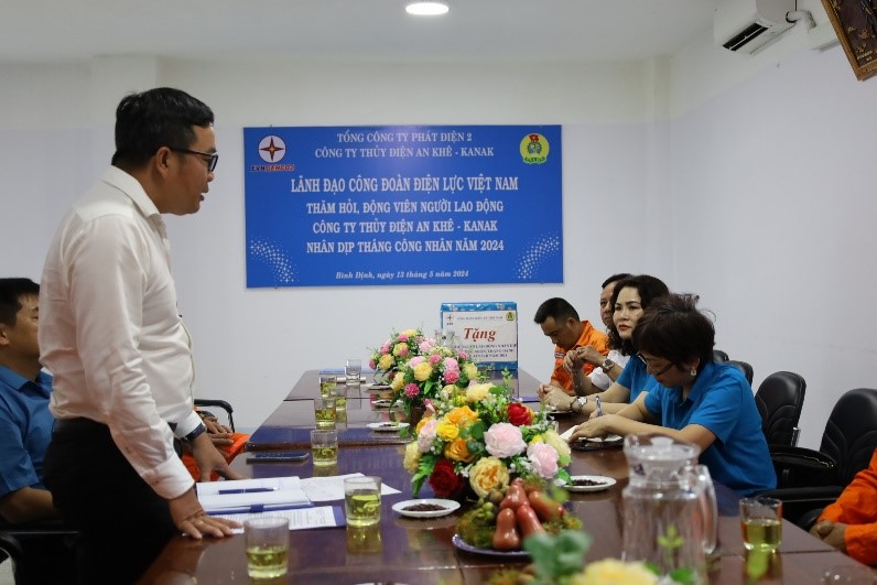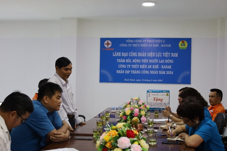 Tại buổi thăm hỏi, đoàn công tác đã nghe đồng chí Đặng Văn Tuần – Giám đốc Công ty và đồng chí Đặng Quốc Anh – Chủ tịch Công đoàn Công ty Thủy điện An Khê – Ka Nak (CĐ TĐAK) báo cáo tóm tắt tình hình sản xuất kinh doanh của Công ty, tình hình việc làm, đời sống vật chất tinh thần của người lao động trong năm 2023 và 4 tháng đầu năm 2024; kế hoạch tổ chức các hoạt động chăm lo người lao động và kết quả thực hiện tháng Công nhân, cũng như các phương án và hình thức thực hiện tháng hành động an toàn vệ sinh lao động năm 2024.