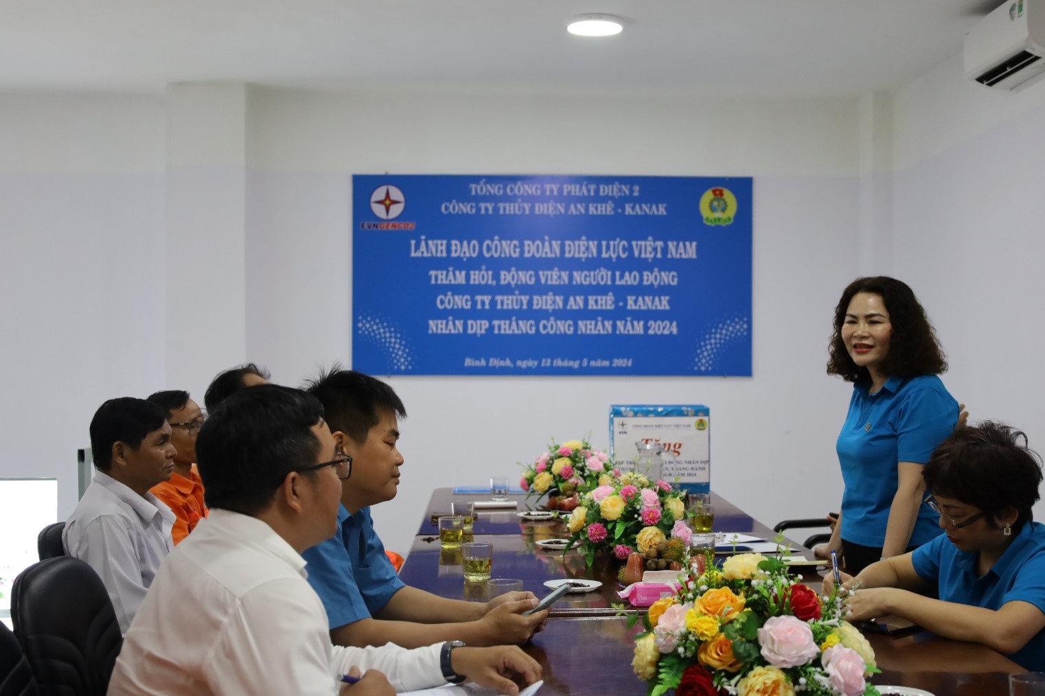 Phát biểu tại buổi thăm hỏi, đồng chí Nguyễn Kim Thanh – Phó Chủ tịch CĐ EVN cho biết tháng 5 là tháng có ý nghĩa đối với người lao động, xin gửi lời trân trọng cảm ơn và lời chúc tốt đẹp nhất đến người lao động Công ty, đồng thời động viên người lao động nỗ lực vượt khó, đảm bảo sản xuất an toàn và tiếp tục đoàn kết hoàn thành tốt nhiệm vụ lao động sản xuất. Đồng chí cũng đã ghi nhận và biểu dương những kết quả đạt được của CĐ TĐAK trong công tác chăm lo đời sống, vật chất cho người lao động. Trong thời gian tới tiếp tục thực hiện có hiệu quả các nội dung, chủ đề trong Tháng Công nhân; phổ biến tuyên truyền Công đoàn viên đẩy mạnh thực hiện tiết kiệm điện; tổ chức nhiều chương trình để chào mừng kỷ niệm 95 năm ngày thành lập Công đoàn Việt Nam và 70 năm ngày Truyền thống ngành Điện. Bên cạnh đó cần đẩy mạnh hoạt động gặp gỡ, lắng nghe tâm tư nguyện vọng của người lao động. Phối hợp với chuyên môn quan tâm hơn nữa đến hoạt động chăm lo đời sống cho người lao động, chú trọng thực hiện, đảm bảo chế độ chính sách, điều kiện làm việc, tạo điều kiện thuận lợi để người lao động yên tâm công tác, sản xuất.