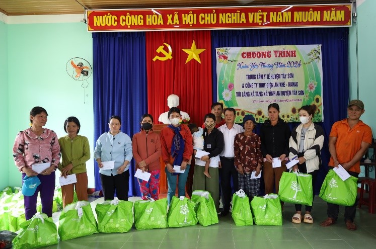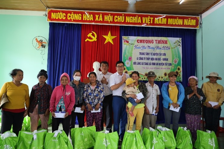 Những ngày cận kề Tết Nguyên đán Giáp Thìn 2024, Công ty Thủy điện An Khê - Ka Nak (AKKN) đã phối hợp với Trung tâm y tế huyện Tây Sơn, tỉnh Bình Định tổ chức chương trình “Xuân yêu thương” năm 2024 cho bà con nhân dân làng Xà Tang. Tại đây, bà con nhân dân đã được tuyên truyền, phổ biến kiến thức chăm sóc sức khỏe, phòng chống dịch bệnh trong dịp Tết Cổ truyền, được tư vấn sức khỏe về thực hiện vệ sinh tay với xà phòng, chế độ sinh hoạt, ăn uống trong các ngày lễ, tết; Chỉnh sửa những thiết bị điện trong nhà đang hư hỏng, không hoạt động được.