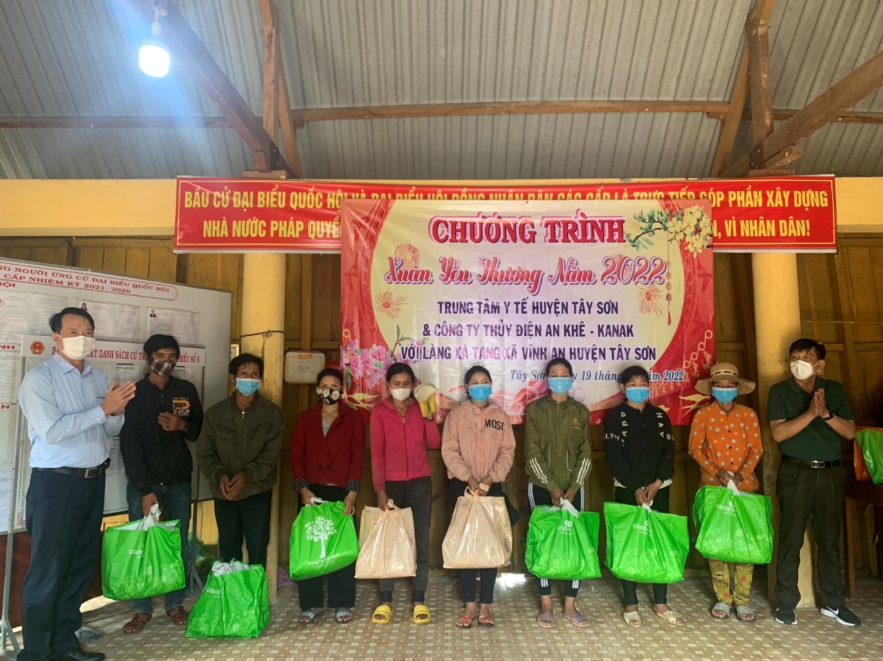 Nhằm góp phần cùng đồng bào các thôn, làng vùng dân tộc thiểu số đón một cái Tết đầm ấm, ngày 19/01/2022, Công ty Thủy điện An Khê – Ka Nak phối hợp với Trung tâm Y tế huyện Tây Sơn đã đến thăm và tặng quà cho bà con nhân dân tại làng kết nghĩa Xà Tang, xã Vĩnh An, huyện Tây Sơn, tỉnh Bình Định trong chương trình “Xuân yêu thương”.