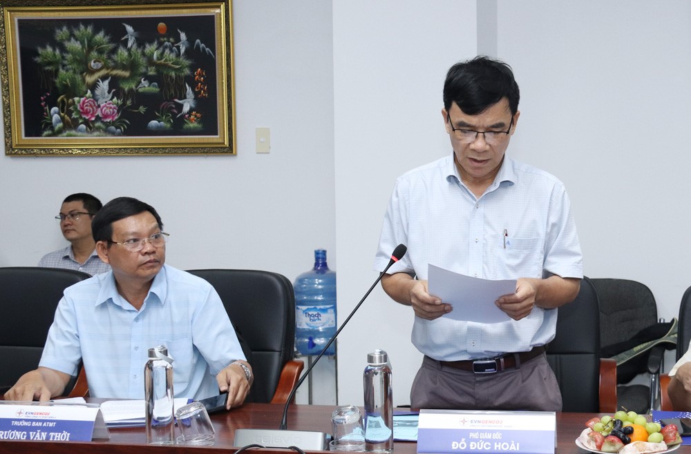 Ảnh: Ông Đỗ Đức Hoài – Phó Giám đốc Công ty Thủy điện An Khê – Ka Nak báo cáo công tác chuẩn bị ứng phó với mùa mưa bão năm 2023