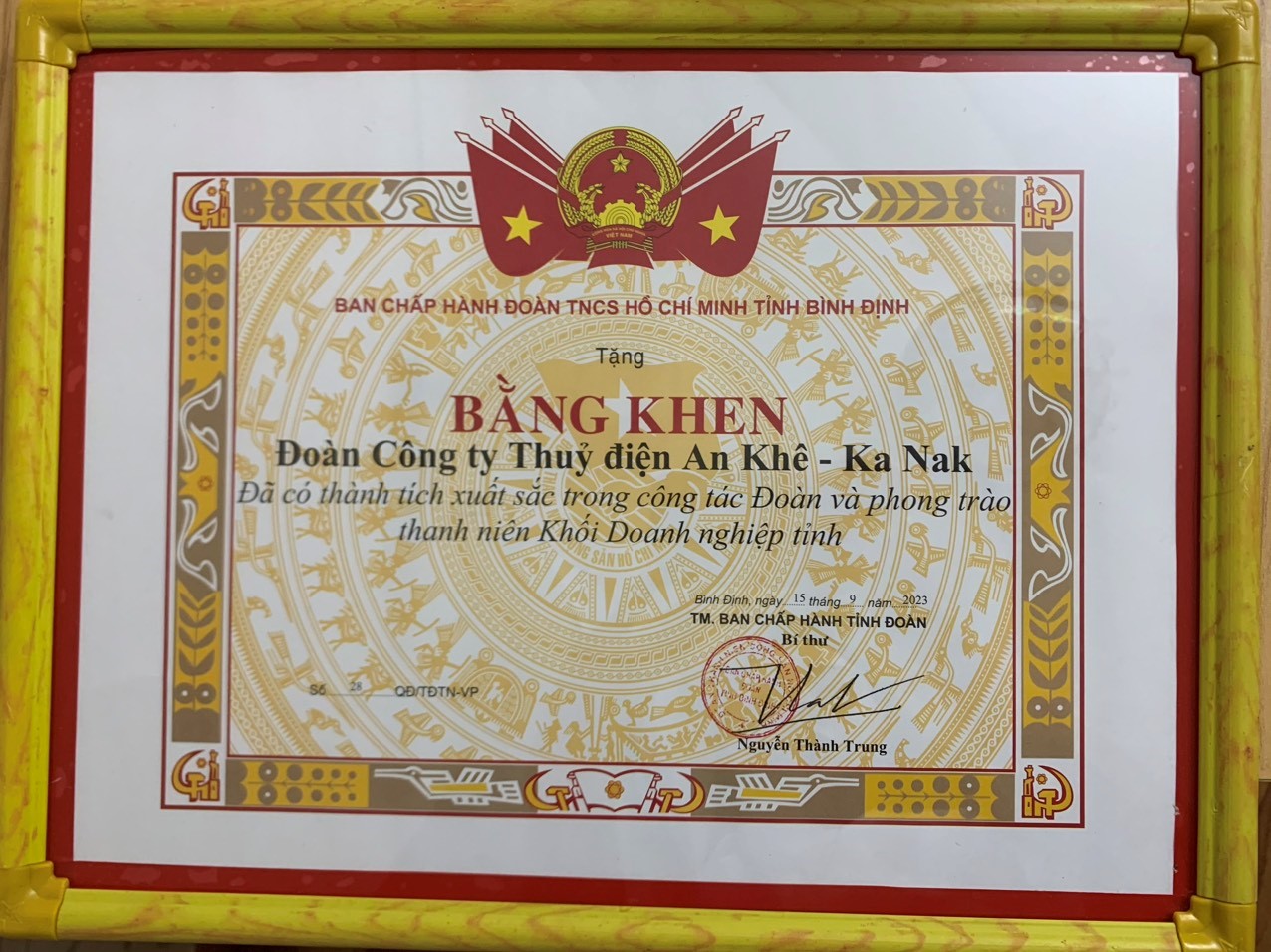 Bằng khen của Tỉnh Đoàn Bình Định dịp này là phần thưởng quý báu cho những nỗ lực của tuổi trẻ AKKN trong năm qua. Đồng chí Kiều Trang – Bí thư Đoàn Thanh niên AKKN cho biết: “Đây là vinh dự hết sức to lớn, tạo động lực mạnh mẽ để toàn thể ĐVTN Công ty tiếp tục phấn đấu rèn luyện, cống hiến sức trẻ, nhiệt huyết cho đơn vị và toàn xã hội, nhất là giữa bối cảnh Đoàn cơ sở AKKN vừa chuyển giao từ trực thuộc Đoàn Khối Doanh nghiệp tỉnh Bình Định về trực thuộc Đoàn cơ sở EVNGENCO2 theo Quyết định số 22/QĐ/ĐTN ngày 06/9/2023 của BCH Đoàn Khối Doanh nghiệp tỉnh Bình Định về việc chuyển giao tổ chức Đoàn và đoàn viên, Quyết định số 21/QĐ/ĐTNEVN ngày 07/9/2023 của BCH Đoàn EVN về việc tiếp nhận tổ chức Đoàn và đoàn viên.