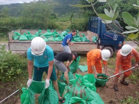CBCNV AKKN đang tích cực vệ sinh môi trường, thu gom rác thải, sắp xếp lại khu vực làm việc, kiểm tra thiết bị, máy móc và phối hợp khắc phục hậu quả do bão gây ra