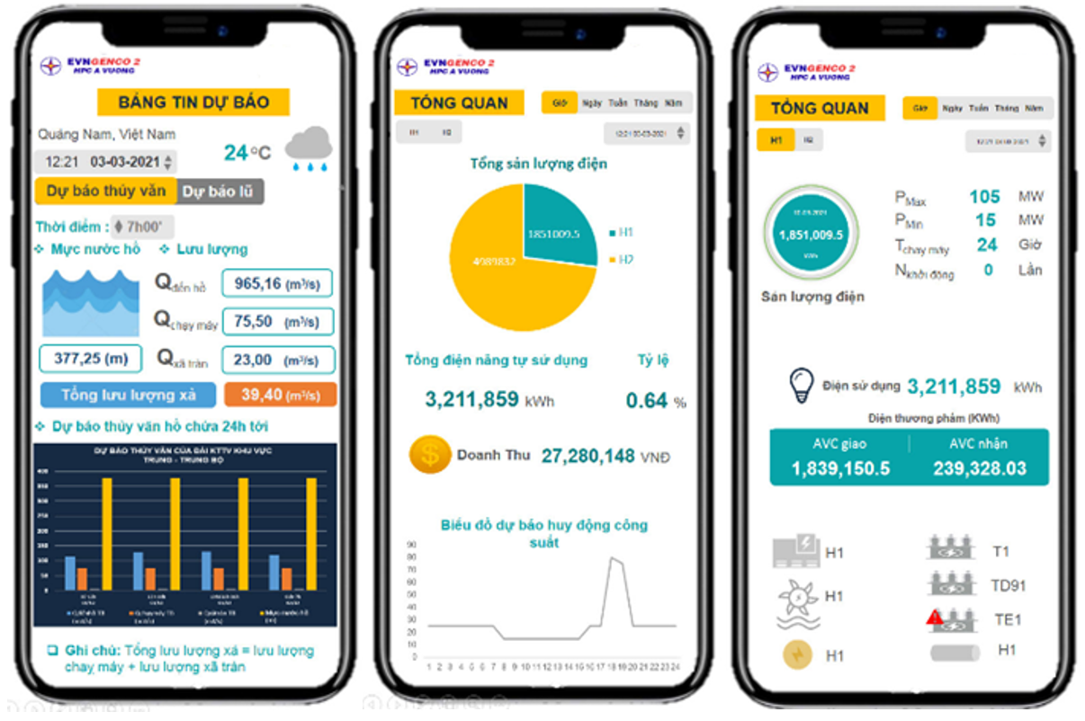 Bên cạnh việc nâng cấp hệ thống DCS, AVC còn nghiên cứu đề xuất ứng dụng phần mềm quản trị sản xuất thông minh nhằm hỗ trợ số hóa dữ liệu sản xuất với chức năng tổng hợp, chọn lọc, phân tích dữ liệu trong các hoạt động sản xuất kinh doanh từ nhiều nguồn khác nhau, từ đó hiển thị trực quan thông tin đến người sử dụng. Cụ thể, phần mềm này cho phép quản lý thông tin sản xuất, thủy văn, tình trạng vận hành, bảo trì, sửa chữa thiết bị, kết nối thu thập dữ liệu từ các hệ thống DCS…các thông số này được báo cáo trực quan trên các giao diện, có khả năng xuất file báo cáo vả chia sẻ đến văn phòng của AVC cũng như EVNGENCO2. Người dùng có thể truy cập hệ thống này trên mọi thiết bị chạy trình duyệt web và bất cứ đâu có kết nối internet, đảm bảo linh hoạt và tính bảo mật thông tin cao