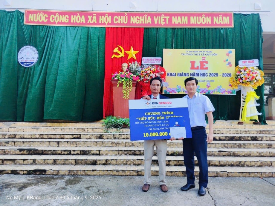 Với mong muốn đồng hành cùng các em học sinh vùng sâu, vùng xa, trực tiếp hỗ trợ, động viên và tạo điều kiện để các em học sinh nghèo, học sinh khó khăn có thêm động lực vững bước trên hành trình đến trường, EVNGENCO2 và AKKN đã triển khai chương trình “Tiếp sức em đến trường” nhân dịp khai giảng năm học mới 2025-2026. Tổng kinh phí hỗ trợ đợt này lên đến 60 triệu đồng.