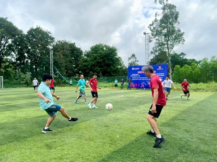 Trận giao lưu bóng đá giữa cán bộ, công chức UBND xã Bình Khê và CBCNV AKKN diễn ra hào hứng, giàu cảm xúc