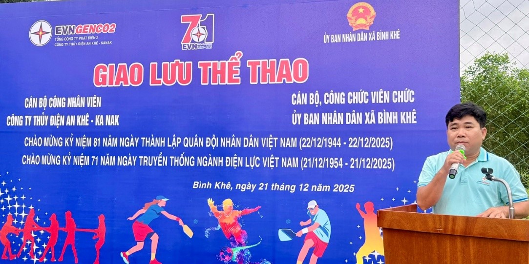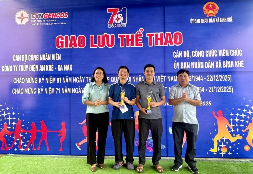 Hướng tới kỷ niệm 81 năm Ngày thành lập Quân đội Nhân dân Việt Nam (22/12/1944 – 22/12/2025) và 71 năm Ngày truyền thống ngành Điện lực Việt Nam (21/12/1954 – 21/12/2025), Công ty Thủy điện An Khê – Ka Nak (AKKN) phối hợp với UBND xã Bình Khê, tỉnh Gia Lai tổ chức chương trình giao lưu thể thao sôi nổi, giàu ý nghĩa, góp phần lan tỏa tinh thần đoàn kết, rèn luyện sức khỏe và khát vọng cống hiến.
