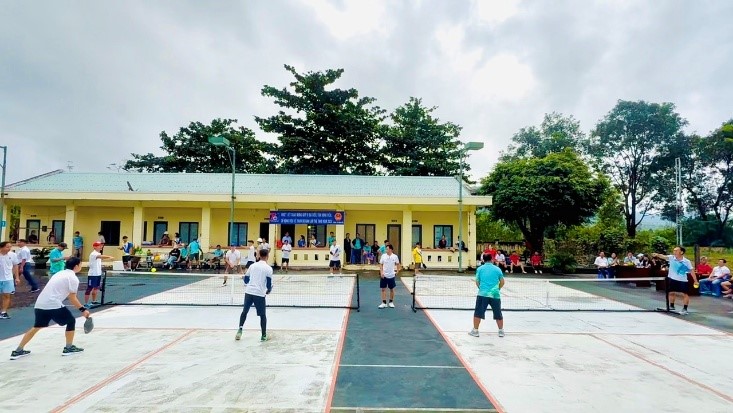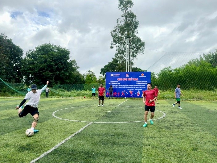 Hoạt động giao lưu diễn ra sôi nổi với nhiều nội dung hấp dẫn như pickleball, kéo co, tiếp sức khéo léo và giao lưu bóng đá. Mỗi trận đấu, mỗi phần thi không chỉ là cuộc tranh tài về thể lực, kỹ năng mà còn là nơi thể hiện ý chí, sự phối hợp nhịp nhàng và tinh thần đồng đội. Những bước chạy, những pha bóng đẹp mắt cùng tiếng reo hò cổ vũ đã góp phần tạo nên bầu không khí đoàn kết, gắn bó, tràn đầy năng lượng tích cực.