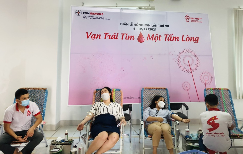 Chị Vương Trần Bảo Ngọc – Nhân viên Phòng Kế hoạch – vật tư (thứ 2 từ trái qua), chị Lê Thị Hồng Huế – Chuyên viên Phòng Hành chính – Lao động (thứ 2 từ phải qua) là những tấm gương sáng trong phong trào hiến máu tình nguyện
