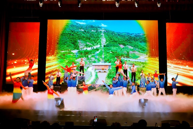 Anh Phú (ngoài cùng bên phải) trong chương trình nghệ thuật “Thắp sáng niềm tin” của AKKN đạt giải Nhất toàn đoàn tại Hội diễn văn nghệ EVNGENCO2 năm 2023