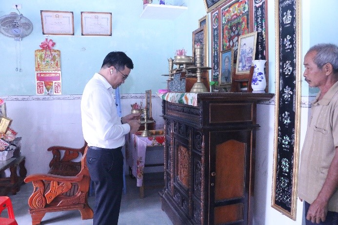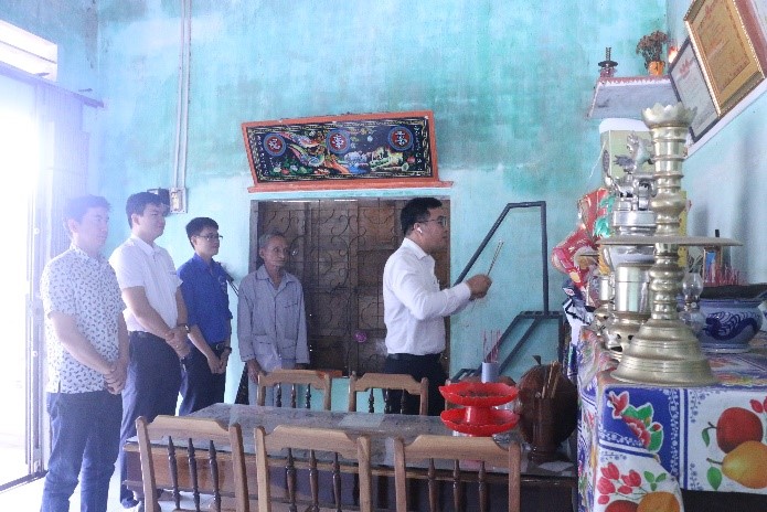Ảnh: Đoàn công tác thắp hương tưởng nhớ Mẹ Trần Thị Khánh và gửi quà động viên gia đình