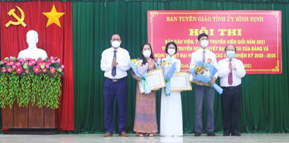 Ban Tổ chức đã trao giải Nhất cho thí sinh Trần Văn Toàn (Đảng ủy Bộ Chỉ huy Quân sự tỉnh), 2 giải Nhì cho các thí sinh Nguyễn Quốc Hiệp (Đảng ủy Bộ Chỉ huy Bộ đội Biên phòng tỉnh) và Lê Đăng Khoa (Thị ủy Hoài Nhơn), 3 giải Ba cho các thí sinh Dương Thị Thu Hoài (Đảng ủy khối Doanh nghiệp tỉnh), Nguyễn Tuấn Anh (Đảng ủy Trường Đại học Quy Nhơn), Lê Thị Thanh Nga (Thị ủy An Nhơn) và 10 giải Khuyến khích.
