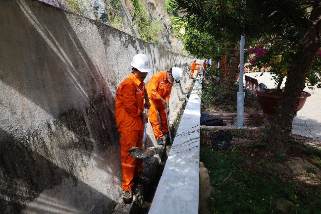 CBCNV AKKN phát quang bụi rậm, nạo vét, khơi thông hai bên kênh thoát nước khu vực Nhà máy Thủy điện An Khê