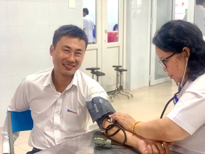 CBCNV AKKN được khám sàng lọc và kiểm tra sức khỏe trước khi tham gia hiến máu, đảm bảo an toàn và chất lượng từng đơn vị máu hiến tặng