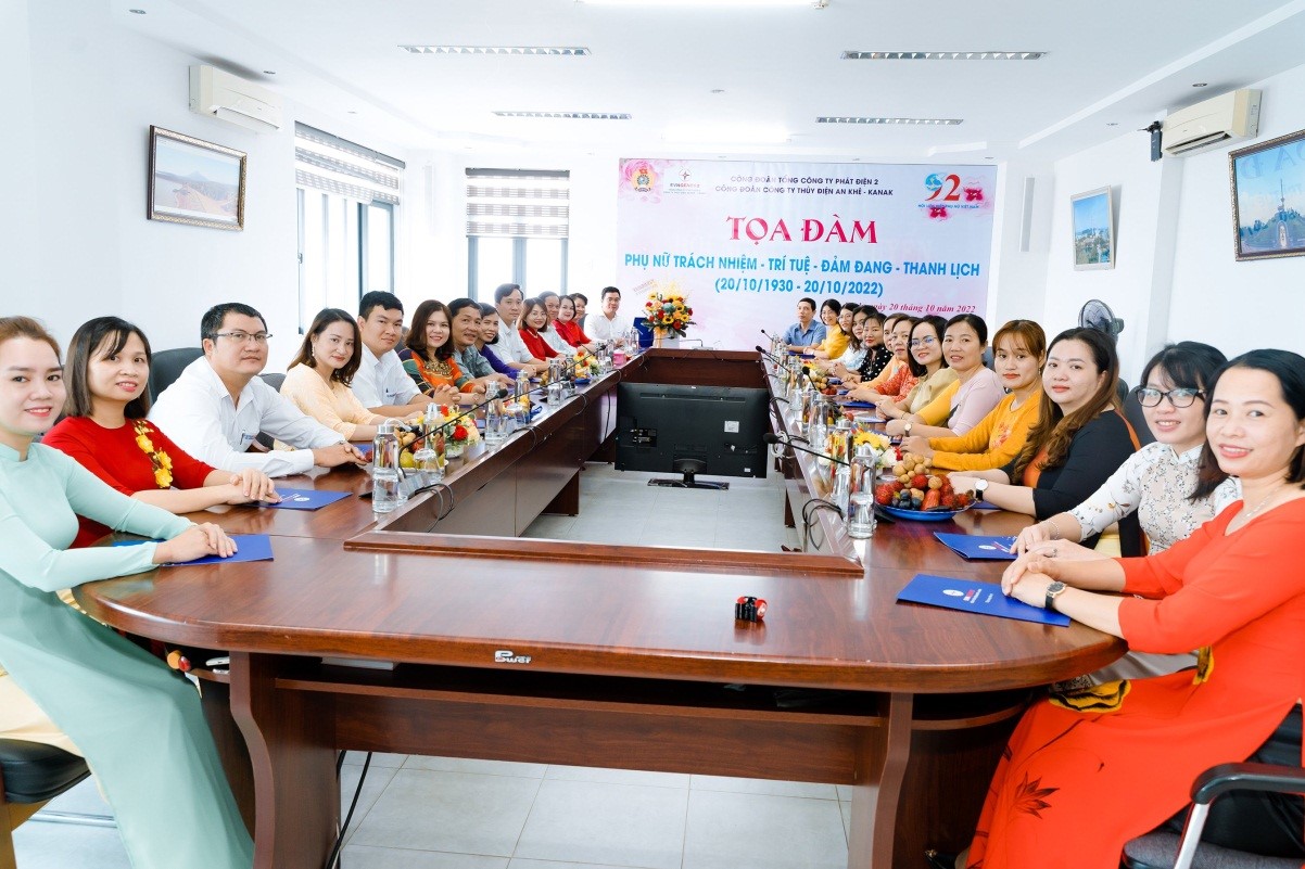Tại buổi tọa đàm, các đại biểu đã ôn lại truyền thống vẻ vang 92 năm của Hội Liên hiệp phụ nữ Việt Nam, vai trò, trách nhiệm của phụ nữ ngành Điện trong thời kỳ đổi mới và giao lưu giữa các chị em CBCNV trong Công ty. Đây là hoạt động ý nghĩa, nhằm thắt chặt hơn nữa tình đoàn kết giữa các nữ CBCNV, tạo khí thế sôi nổi, hào hứng, động lực cho chị em ngày càng hăng hái thi đua “giỏi việc nước, đảm việc nhà”, góp phần hoàn thành xuất sắc nhiệm vụ tại đơn vị và vai trò của người phụ nữ trong gia đình.