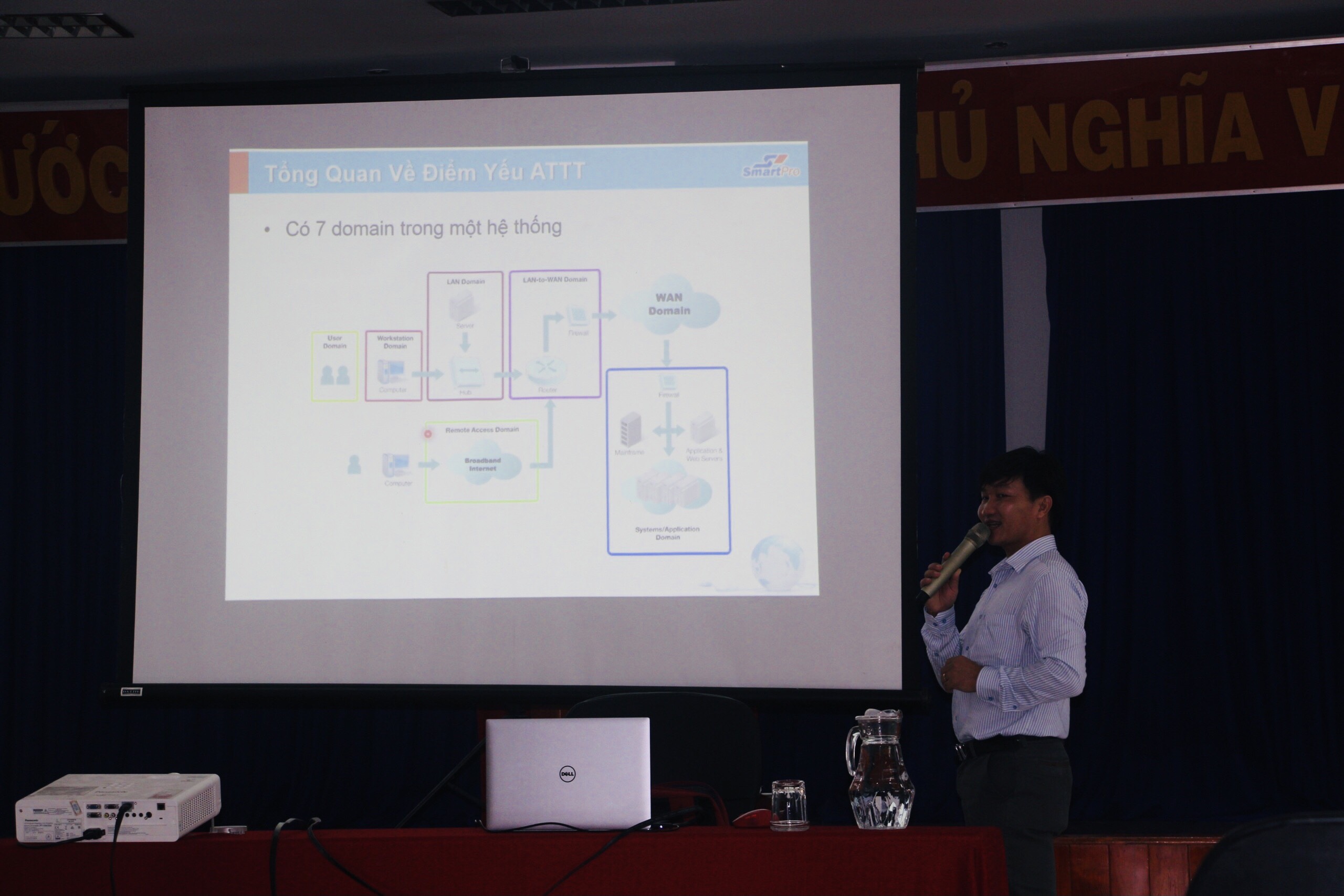 Giảng viên chương trình đang chia sẻ kiến thức về an toàn, an ninh thông tin cho CBCNV Công ty