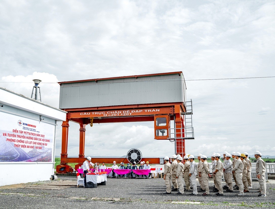Theo phương án diễn tập PCTT&TKCN năm 2022, có 03 tình huống giả định đó là Cửa van cung số 1 đang vận hành nâng thì bị sự cố không tiếp tục vận hành nâng được nữa; Sử dụng máy phát điện Diesel dự phòng 2 cung cấp nguồn điện cho Đập tràn khi mất điện lưới địa phương 22kV và máy phát điện Diesel dự phòng 1 bị sự cố; Sạt lở cục bộ mái đập thượng lưu bờ trái đập dâng An Khê. So với trước đây, các tình huống giả định và cách thức triển khai lần này được đổi mới, sáng tạo hơn.