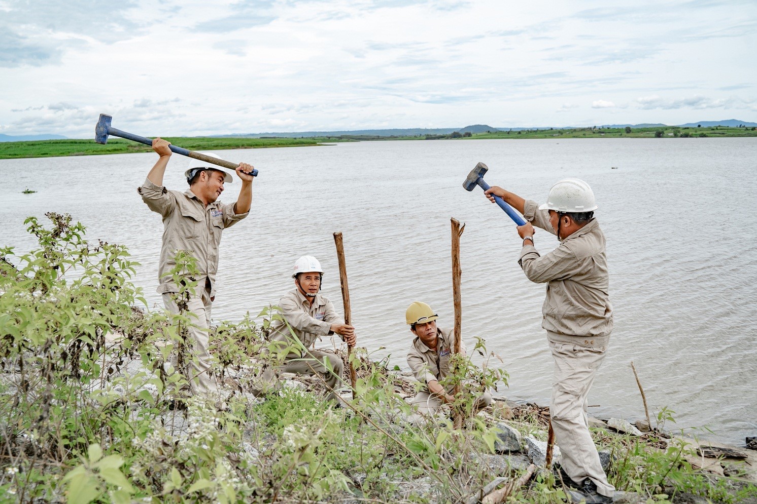 Xử lý tình huống sạt lở mái đập thượng lưu bằng cọc tiêu