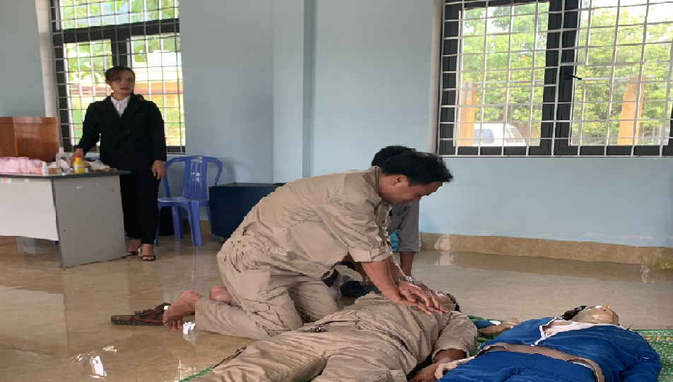 Cán bộ y tế địa phương hướng dẫn hô hấp nhân tạo nạn nhân bị điện giật