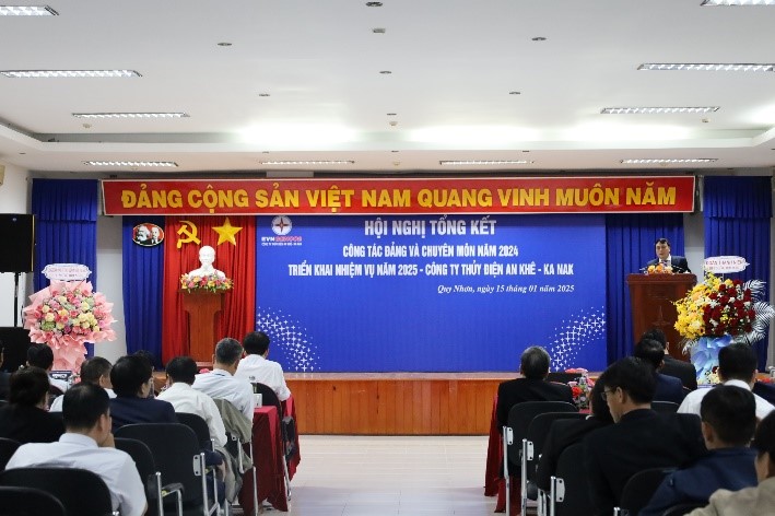 Phát biểu chỉ đạo tại Hội nghị, đồng chí Lê Quốc Vũ – Uỷ viên Ban Thường vụ Đảng ủy, Chủ nhiệm UBKT Đảng ủy, Phó Tổng Giám đốc EVNGENCO2 đã đánh giá cao những nỗ lực của tập thể AKKN trong năm 2024 và ghi nhận, biểu dương những đóng góp của đơn vị trong việc hoàn thành nhiệm vụ chính trị, chuyên môn của EVNGENCO2 như đã thực hiện tốt công tác xây dựng Đảng, thực hiện tốt kế hoạch sản xuất, sửa chữa lớn, công tác đào tạo, cải cách hành chính... Bên cạnh đó, đồng chí cũng yêu cầu trong thời gian tới, AKKN cần kiểm tra, chuẩn bị kỹ lưỡng, tổ chức thành công Đại hội các chi bộ trực thuộc tiến tới tổ chức thành công Đại hội Đảng bộ Công ty nhiệm kỳ 2025-2030; chủ động nghiên cứu, đề xuất các giải pháp, tập trung giải quyết các khó khăn, vướng mắc, khắc phục triệt để những tồn tại của năm 2024, phát huy những kết quả đã đạt được và tập trung để hoàn thành nhiệm vụ kế hoạch năm 2025. Đặc biệt, năm 2025 được dự báo là năm nhiều khó khăn, thách thức, do đó, AKKN cần triển khai quyết liệt nhiệm vụ sản xuất ngay từ những ngày đầu năm, áp dụng nhiều giải pháp để hoàn thành kế hoạch sản lượng điện được giao thông qua việc ban hành Nghị quyết thực hiện chỉ tiêu, nhiệm vụ năm 2025; giao nhiệm vụ, chuyên đề công tác đến từng tập thể, cá nhân cụ thể và có đôn đốc, kiểm tra; Nghiên cứu, đề ra giải pháp chào giá linh hoạt, hiệu quả thị trường điện nhằm tăng doanh thu cho đơn vị; đẩy mạnh công tác chuyển đổi số; Tăng cường công tác phòng chống tham nhũng; Thực hiện tối ưu hóa chi phí toàn diện, trên mọi mặt công tác.