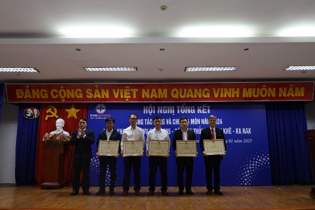 Các tập thể (trái) và cá nhân (phải) được EVNGENCO2 tặng Giấy khen hoàn thành xuất sắc nhiệm vụ năm 2024