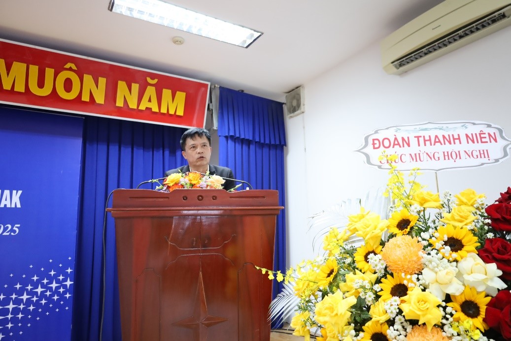 Đồng chí Đỗ Đức Hoài – Phó Bí thư Đảng ủy phụ trách Đảng bộ Công ty, Phó Giám đốc AKKN trình bày báo cáo kết quả thực hiện nhiệm vụ và phương hướng nhiệm vụ năm 2025 của công tác Đảng bộ Công ty; Báo cáo kết quả thực hiện nhiệm vụ năm 2024, mục tiêu, nhiệm vụ kế hoạch năm 2025 của AKKN