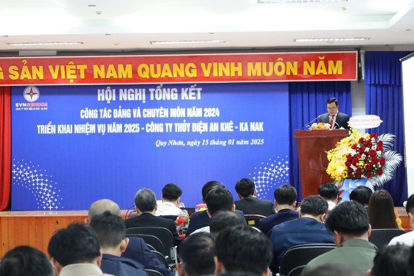 Tại Hội nghị, qua các báo cáo chính trị cho thấy, Đảng bộ AKKN đã lãnh đạo, chỉ đạo các chi bộ, đoàn thể, chuyên môn bám sát các Nghị quyết, chỉ thị của cấp ủy đảng cấp trên để triển khai, thực hiện các nhiệm vụ, giải pháp, thực hành tiết kiệm chống lãng phí trong hoạt động SXKD - ĐTXD, vận hành các tổ máy an toàn, góp phần quan trọng cùng EVN/EVNGENCO2 hoàn thành nhiệm vụ cung ứng đủ điện cho sản xuất kinh doanh (SXKD) và sinh hoạt của nhân dân. Đồng thời, AKKN đã hoàn thành tốt các chỉ tiêu đề ra trong Hội nghị tổng kết năm 2024. Trong đó, mặc dù trong năm vừa qua, điều kiện thủy văn không thuận lợi, khô hạn và nắng nóng kéo dài, lượng nước về hồ chỉ đạt 60-70% so với cùng kỳ các năm, nhưng AKKN vẫn ưu tiên xả nước và cung cấp nước cho môi trường, cung cấp đầy đủ nước sinh hoạt cho bà con hạ du. AKKN đã sản xuất được 515,5/547 triệu kWh, đạt 94,24% sản lượng kế hoạch giao năm 2024, đồng thời, hoàn thành tốt các chỉ tiêu kinh tế, kỹ thuật EVNGENCO2 giao, cụ thể tỷ lệ điện tự dùng thấp hơn kế hoạch EVNGENCO2 giao là 0,73/0,75%, hệ số khả dụng đạt 104,45%, suất sự cố 0%.