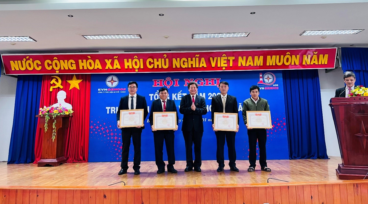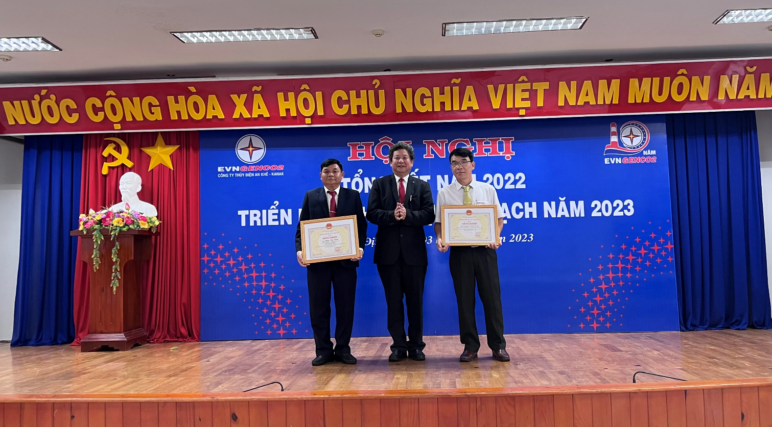 Ông Trương Hoàng Vũ – Thành viên HĐQT, Tổng Giám đốc EVNGENCO2 tặng Bằng khen của Bộ Công Thương cho tập thể Công ty Thủy điện An Khê – Ka Nak và cá nhân Giám đốc Công ty ông Đặng Văn Tuần